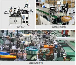The device is suitable for external welding speakers such as headphones/multimedia, realizing processes such as sound film assembly, automatic welding, automatic polarity detection, automatic on-off detection, and automatic point protection glue